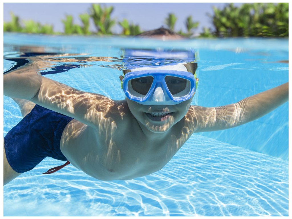 V masce může dítě bezpečně potápět, šplouchat ve vodě a pozorovat podvodní svět.