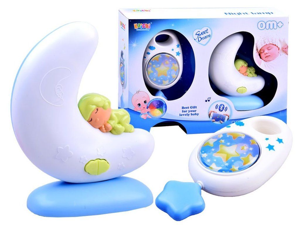 Dětská noční lampa ve tvaru měsíčku hraje příjemné melodie. Po přepnutí tlačítka můžete zapnout relaxační zvuky přírody. Pomocí Bluetooth můžete k hračce připojit své zařízení a pouštět hudbu nebo pohádky dle vlastního výběru. Během hraní ukolébavek lampa svítí jemným barevným měnícím se světlem. V balení naleznete samostatnou hrací skříňku, která se natahuje šňůrkou a můžete ji vzít do kočárku či auta.
