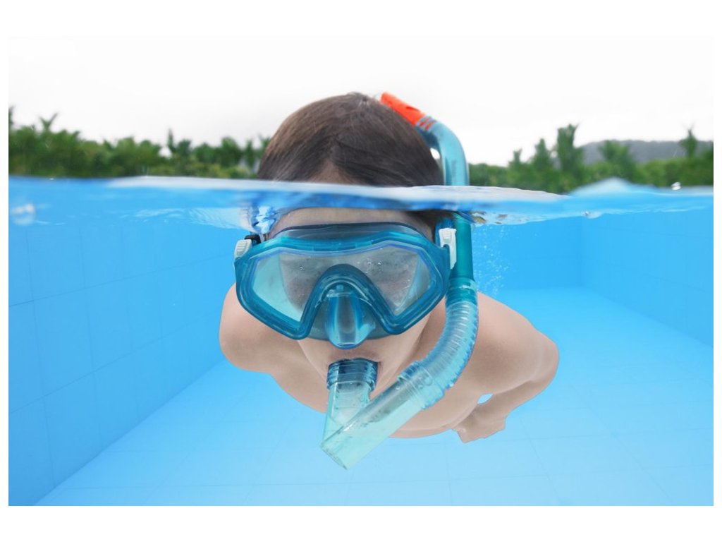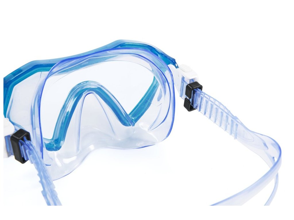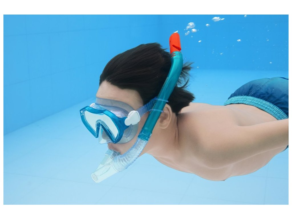 Tato sada je vhodná pro děti od 7 let. Maska je vyrobena z UV ochranných čoček. Má také měkkou kraje kolem brýlí a pohodlně sedí na obličeji dítěte, což zabraňuje vniknutí vody do brýlí. K dispozici je také nastavitelný popruh na hlavě, který můžete přizpůsobit hlavě vašeho dítěte.