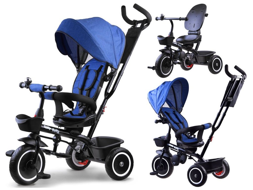 Dětská tříkolka 3v1 se stříškou tmavě modrá