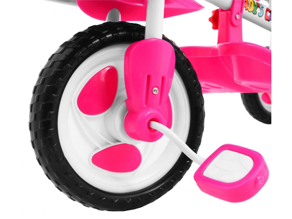 Dětská tříkolka je vyrobena z kvalitního materiálu a má stabilní a robustní rám. Kola jsou měkká a pěnová značky EVA. Když už Vašemu dítěti dojdou při ježdění síly může si položit nohy na podpěrky a je možno jej tlačit tyčí.