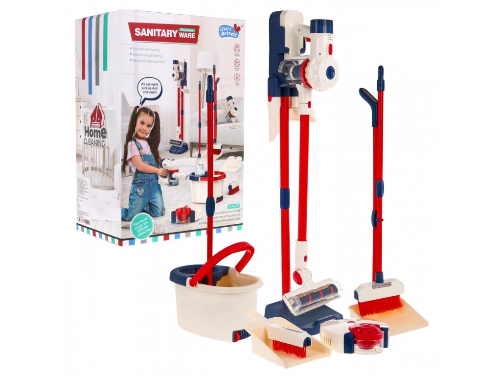 Dětská uklízecí sada 6v1 by neměla chybět v žádném dětském pokojíčku. Sada obsahuje robotický vysavač, mop, kbelík, smeták, smetáček a lopatku. Hračka má zvukové a svítící efekty.