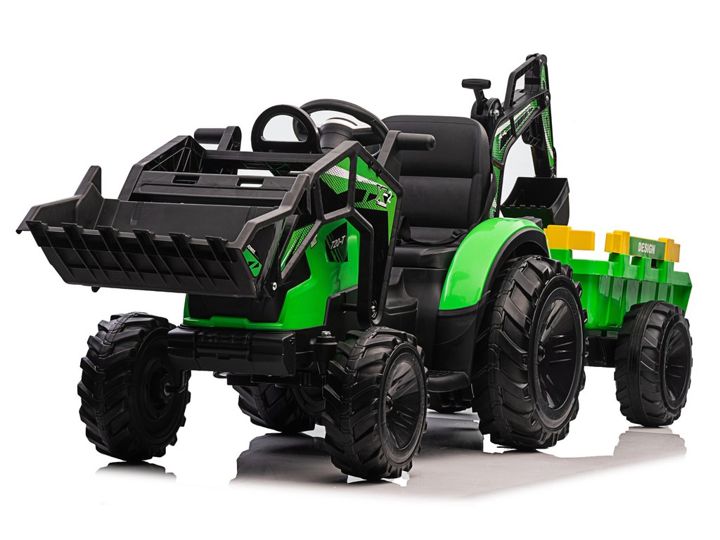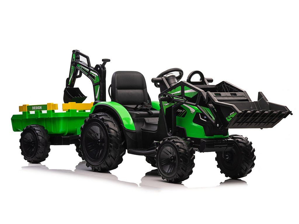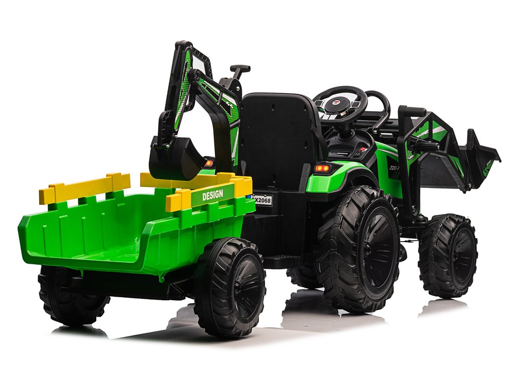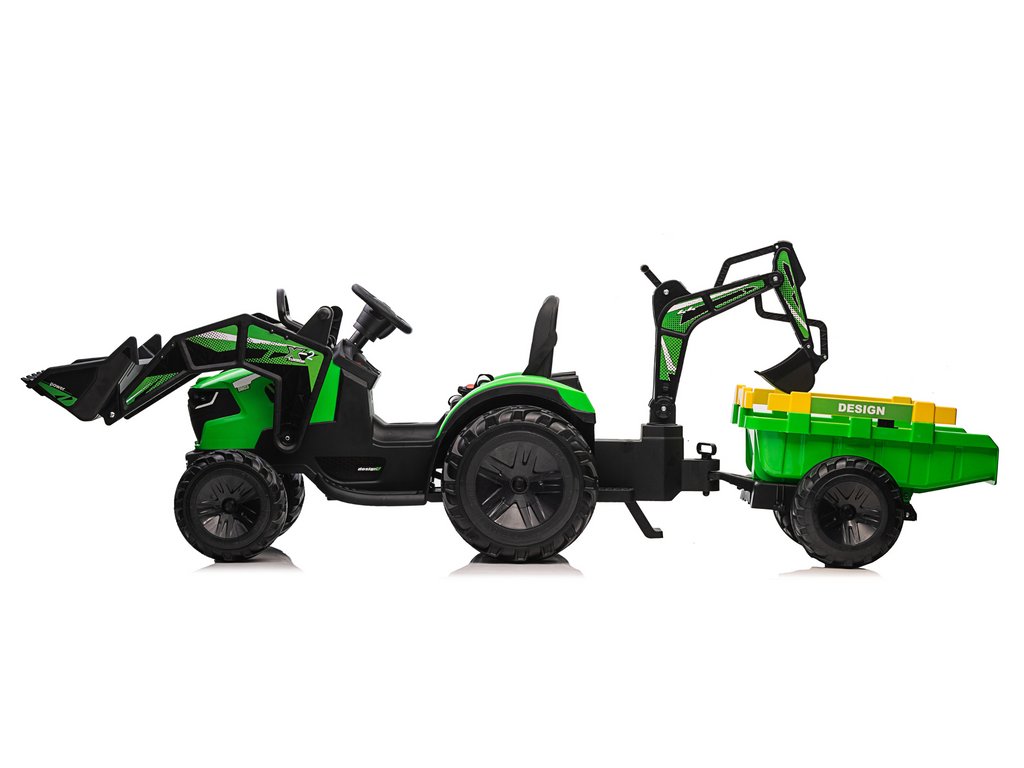 Dětský elektrický traktorbagr s přívěsem SX2068 zelený