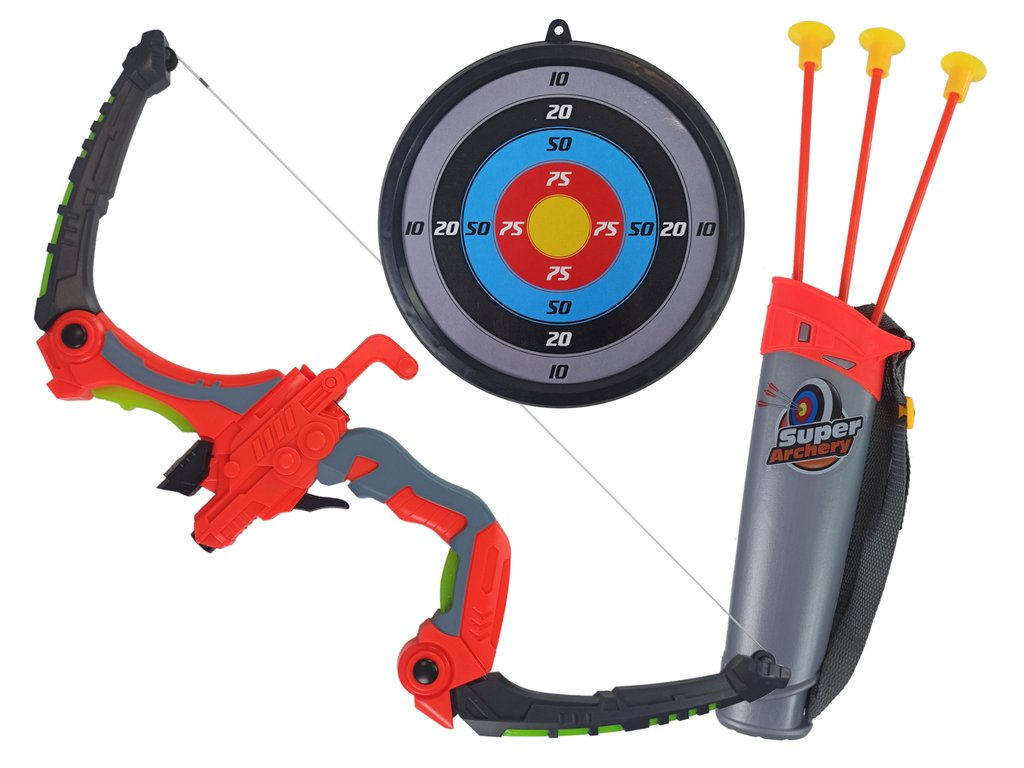 V balení se nachází terč, který můžete pověsit na zeď a dítě na něj může střílet šípy, který jsou zakončené přísavkami, které se snadno přichytí na hladký povrch. V sadě se nachází tři šípy a pouzdro na šípy, které dítě může nosit na zádech.