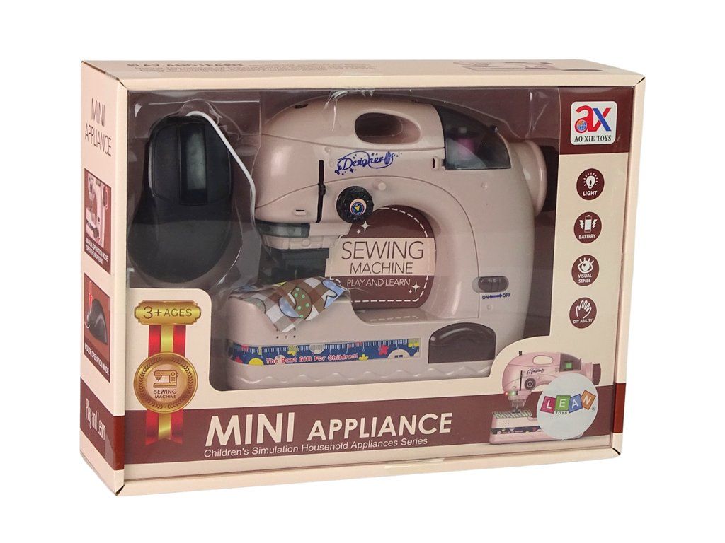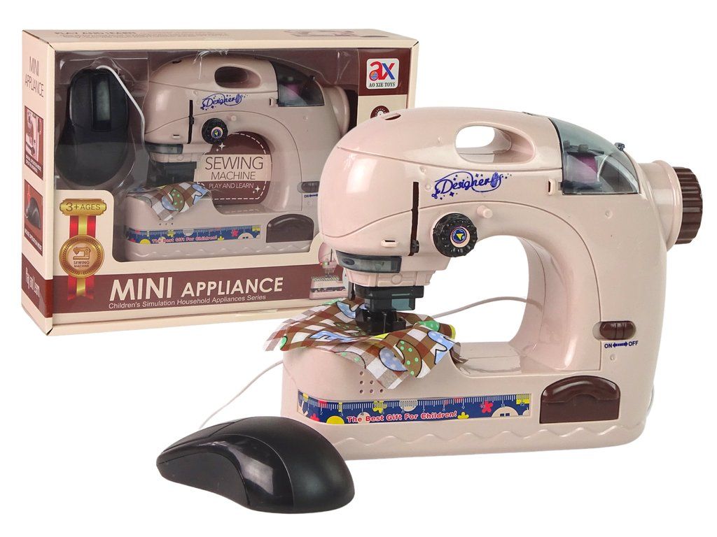 Doprovázený zvuky charakteristickými pro skutečný produkt. Na přední straně hračky je 15 cm dlouhý metr, takže dítě bude moci snadno odměřit kousky materiálu správné délky. V designu tohoto stroje nemohlo chybět knoflík ručního šití, který je umístěn na pravé straně hračky a rukojeť.