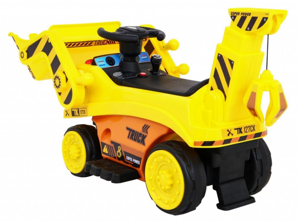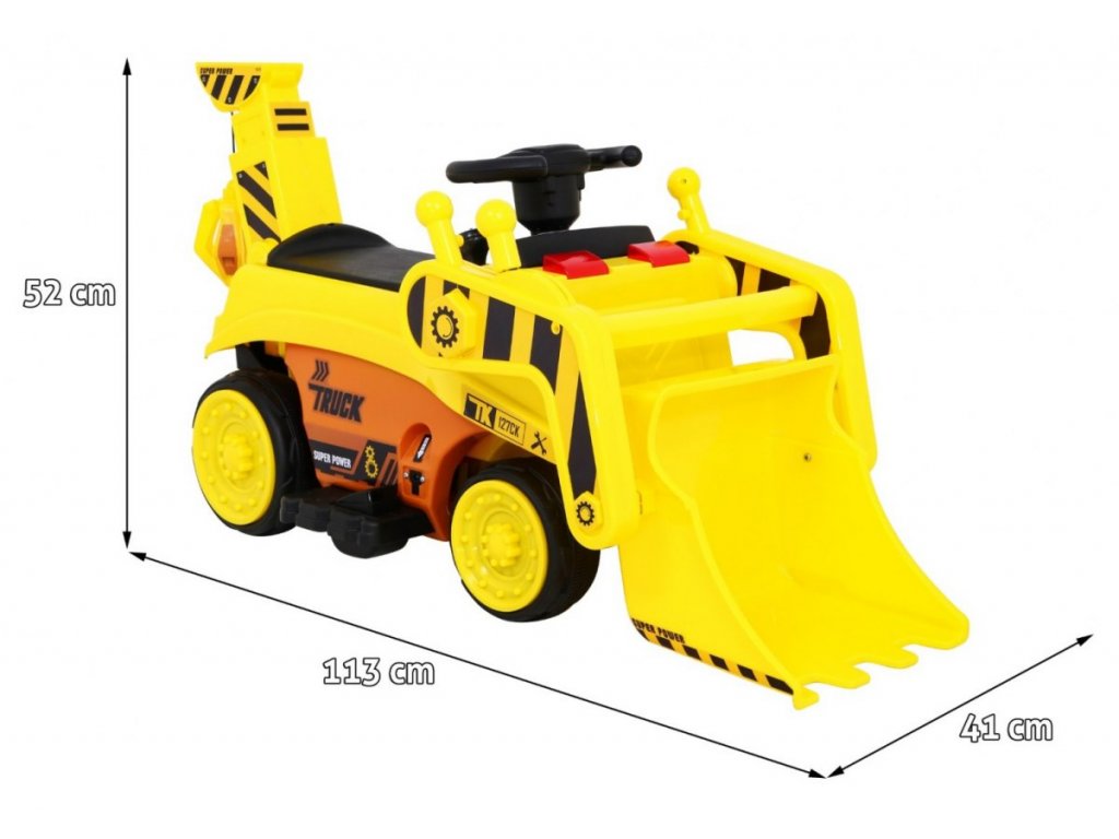 Dětské elektrické odrážedlo autíčko - bagr žlutý