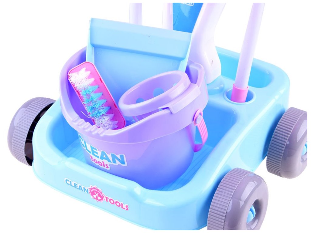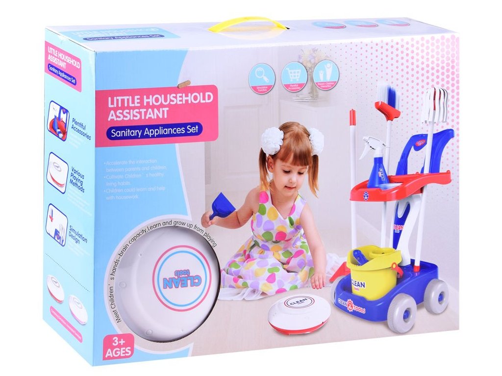 Dětská úklidová sada učí děti, jak mají udržovat pořádek a čistotu ve svém pokojíčku. Součásti uklízecí sady je i robotický vysavač, který vydává zvukové efekty a má svítící diody.
