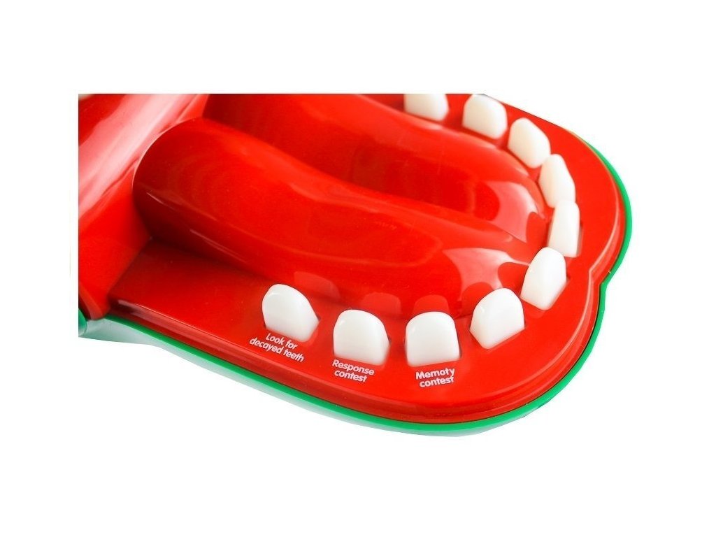 Zmáčkněte červený zub krokodýla označený jako „Look for decayed teeth” a začněte veselou hru. Střídejte se v mačkání zubu za zubem. Opatrně! Hráč, který narazí na bolavý zub, vypadává ze hry — a krokodýl skousne jeho prsty.