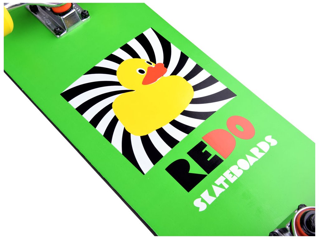 Dřevěný skateboard ReDo Rubr Duck je ideální volbou pro všechny skateboardisty. Díky svému originálnímu vzhledu se hraní se skateboardem může změnit ve skvělé dobrodružství. Časově odolný design s ikonickou žlutou kachnou umožní každému majiteli vlastnit jedinečný skateboard pro jízdu ve skateparku, na cyklostezkách nebo jednoduše v parku. Skateboardová deska je vyrobena z vysoké jakosti javorového dřeva s 7 vrstvami. Vrchní část desky je pokryta protiskluzovou vrstvou s úžasným designem zdola.