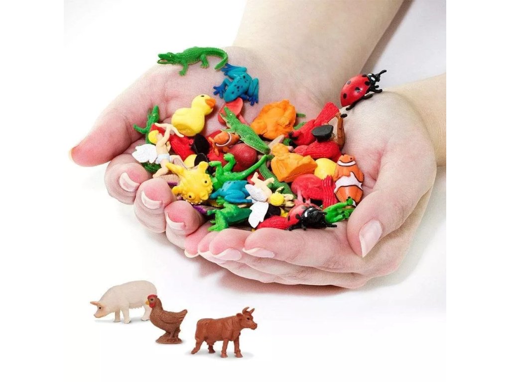 Kolekce ručně malovaných mini figurek s motivem farmy. Figurky jsou velmi malé (cca 2–2,5 cm) a hodí se jako dekorace, drobné dárečky nebo pomůcky pro učení a tvoření.