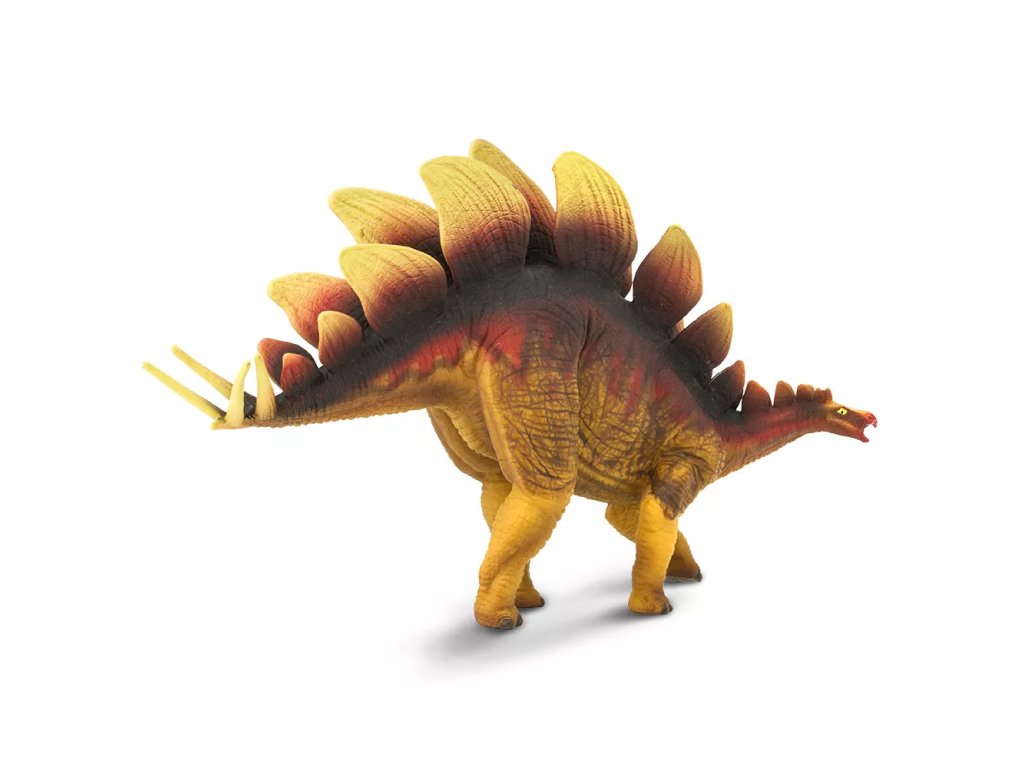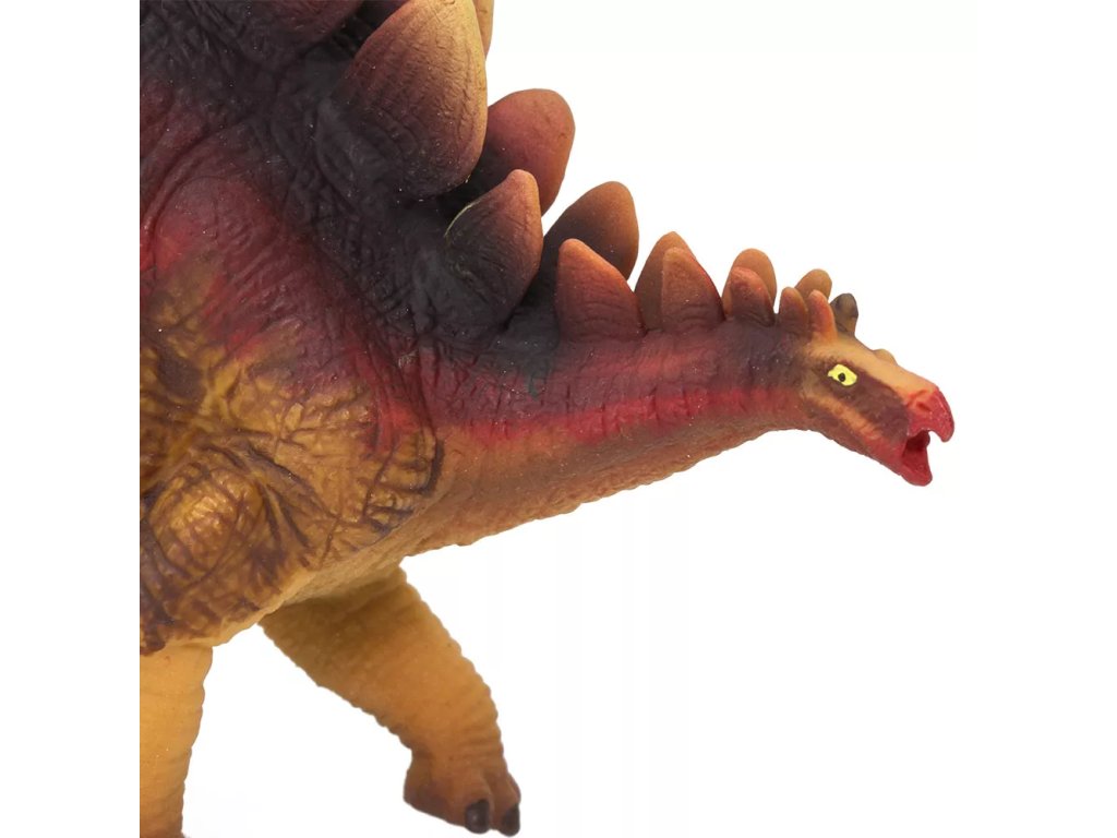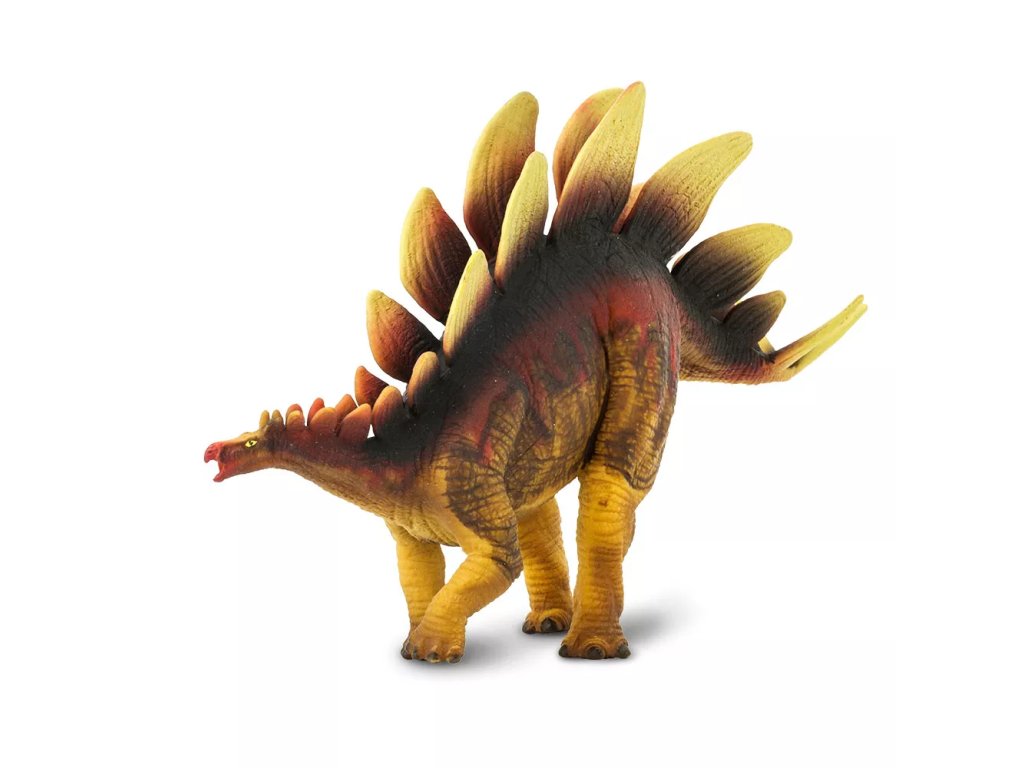 Reprezentativní model známého býložravého dinosaura se živými barvami, charakteristickou řadou plochých desek na hřbetě a dlouhým ocasem s hroty. Precizní tvarování zachycuje typické rysy Stegosaura.