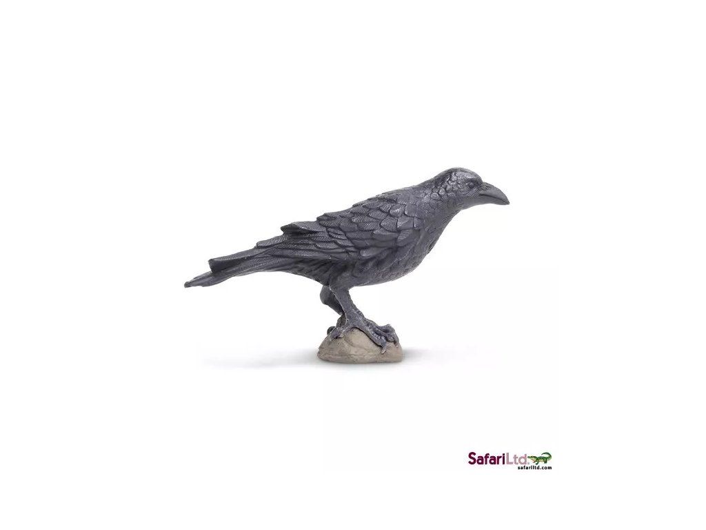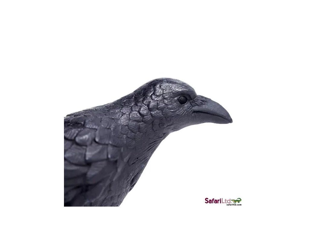 Realistická figurka krkavcovitého ptáka s charakteristickým kovově modrým nádechem, viditelným na slunečním světle.