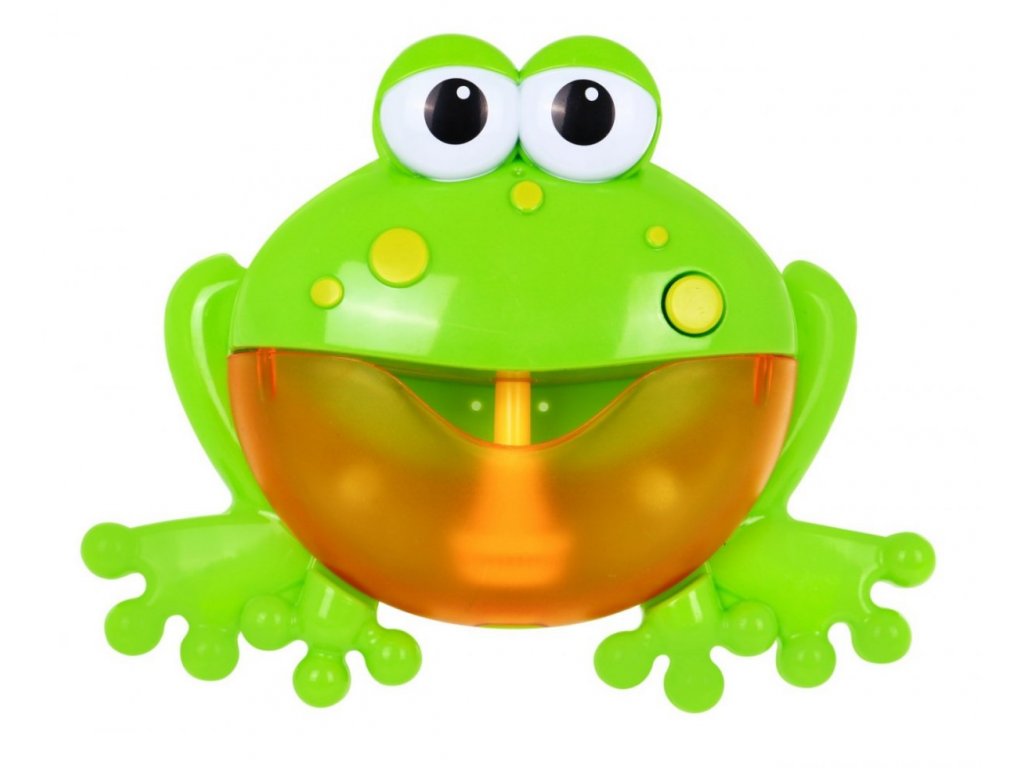 Hračka do vany žába vytvářející bubliny, je návrhem pro děti od 18 měsíců. Hračka je napájena 2 x 1,5 V AA bateriemi - není součástí balení. Žába na tvoření bublin se snadno instaluje, na zadní straně má 3 přísavky, díky nimž ji lze snadno a trvale namontovat na zeď nebo vanu. Na břiše žáby je nádoba na kapalinu. Měla by být doplněná vodou a trochou dětské bublinkové tekutiny nebo šamponem. Čím více tekutiny nebo šamponu přidáme, tím více vytvoříte bublin. Když je žába zapnutá, vytváří nepřetržitý proud mýdlových bublin.