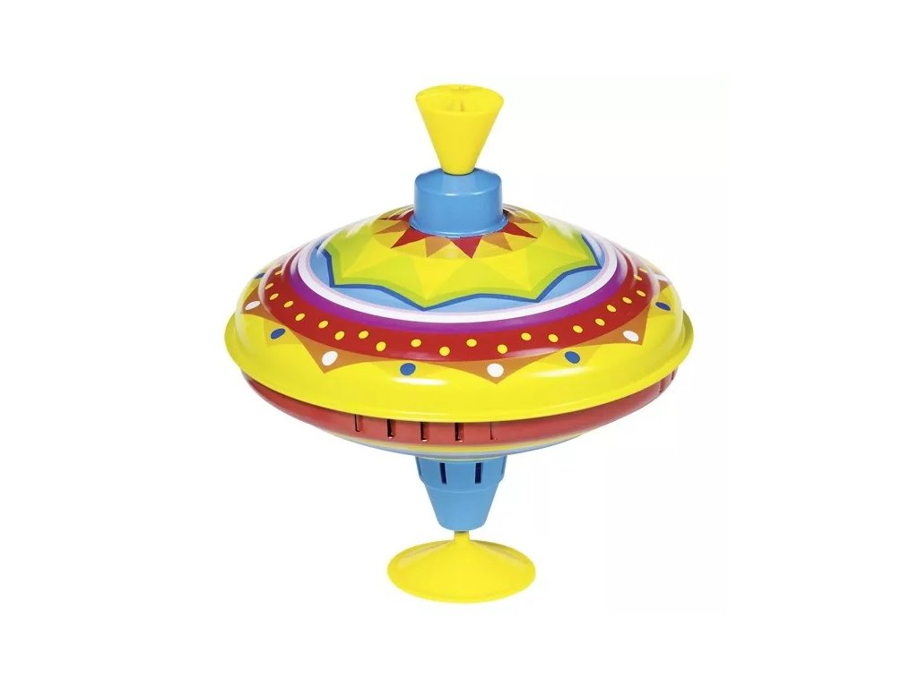 Tradiční dětská káča s plechovým tělem a umělohmotným podstavcem pro lepší stabilitu při roztáčení. Při otáčení vydává příjemný zvuk.