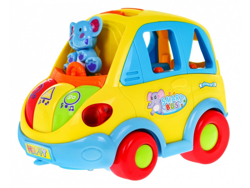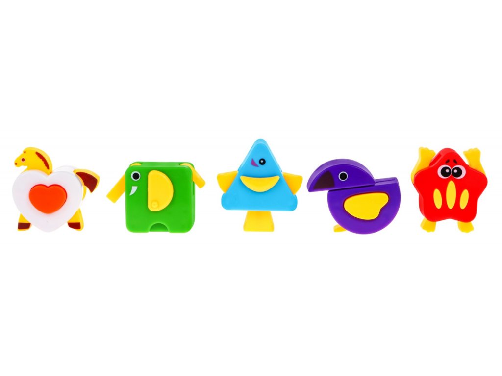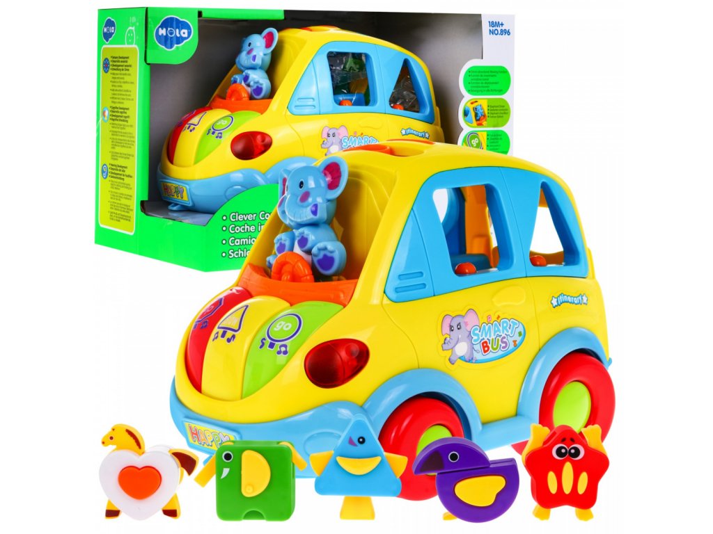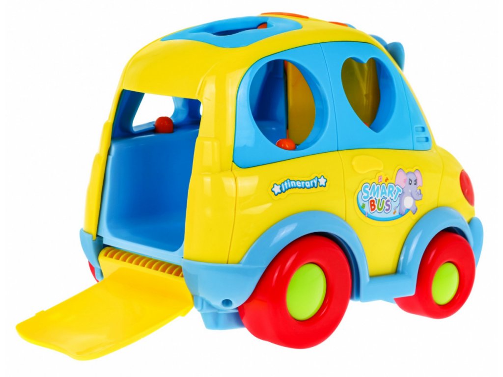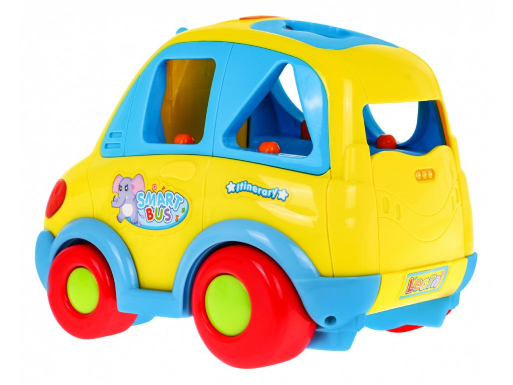 Po umístění tvaru do skládačky, autobus vysloví geometrický tvar v angličtině, Zajímavý prvkem sady jsou geometrické tvary, které po stisknutí změní na zvířátka - hvězdice, pták, kůň, ryba a slon.