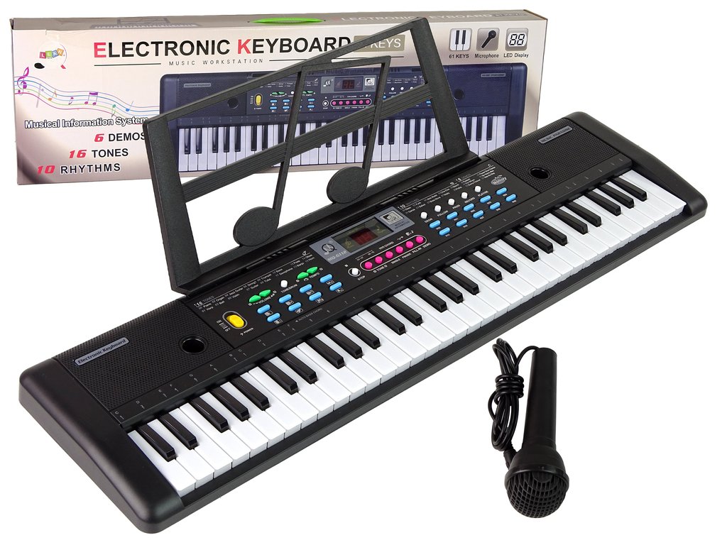 Keyboard s mikrofonem je skvělá hračka pro malé hudební nadšence. S 61 klávesami a mikrofonem mohou děti hrát i zpívat své oblíbené písně. Ergonomický design a lehká konstrukce zajišťují pohodlné používání i snadné přenášení. Držák na noty umožňuje umístit texty písní a uspořádat tak zábavné karaoke večery.