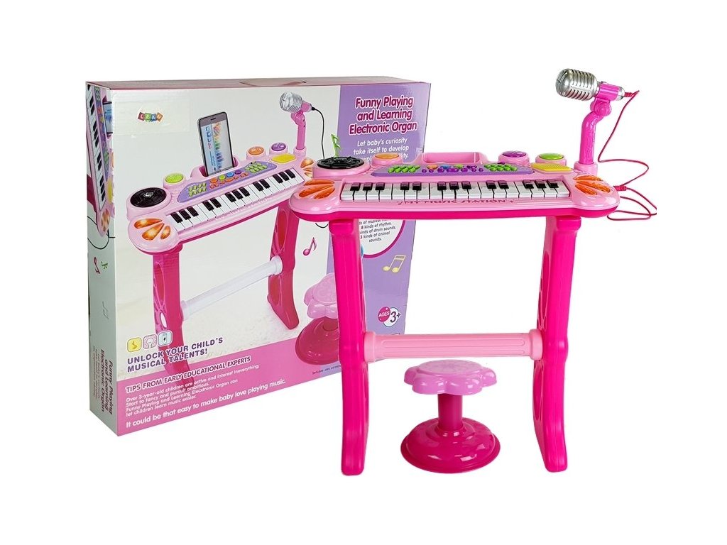 Na pravé i levé straně dětského keyboardu jsou umístěné reproduktory. Těsně nad klávesami je řada tlačítek, které skrývají úžasné efekty a funkce. Velkou výhodou je, možnost připojení telefonu k nástroji a přehrávání oblíbené hudby. Hračka podpoří rozvoj hudebních dovedností, sluch, rytmus a představivost.