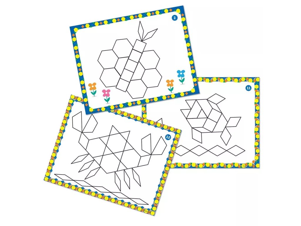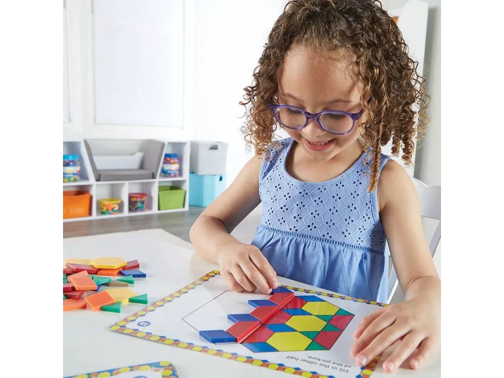 Sada umožňuje vytvářet obrázky a kombinovat různé tvary a vzory. Děti se prostřednictvím praktických činností naučí základy geometrie, například identifikaci tvarů, tvorbu vzorů a 2D navrhování.