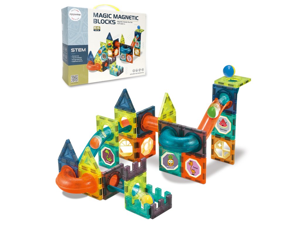Magnetická stavebnice kuličková dráha 66 dílů - Poškozený obal - s-1201