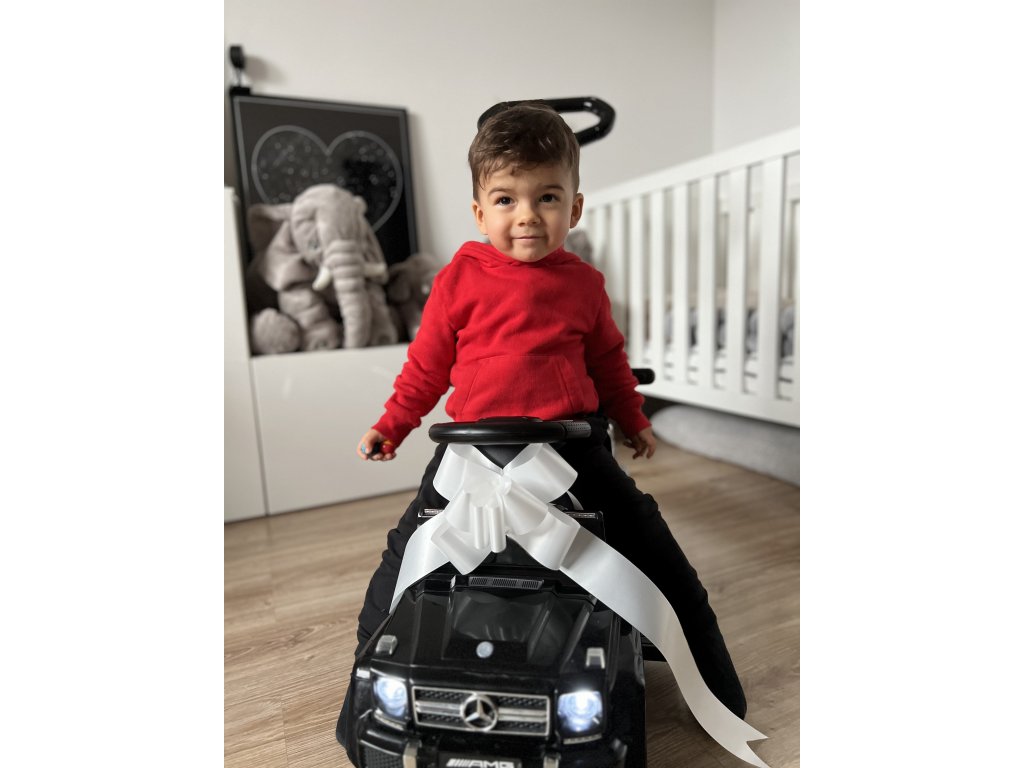 Mašli snadno připevníte na elektrické autíčko či jiný dárek a pak už stačí jednoduše předat překvapení oslavenci.