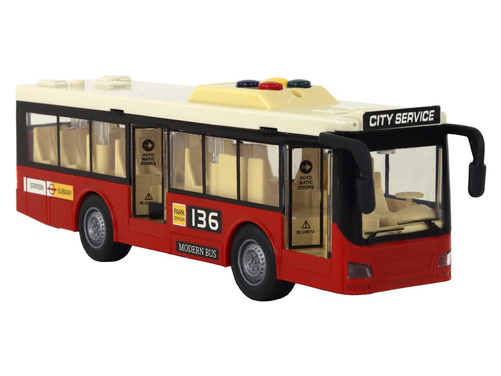 Městský autobus 1:16 je jedinečná hračka nabízející nejen skvělou vizuální atrakci, ale také interaktivní zábavu. Hračka je ve červeno-bílém provedení, což jí dodává autentičnost, připomínající skutečné městské autobusy.