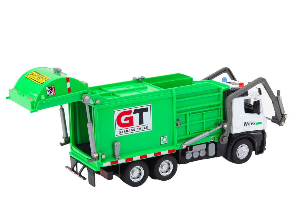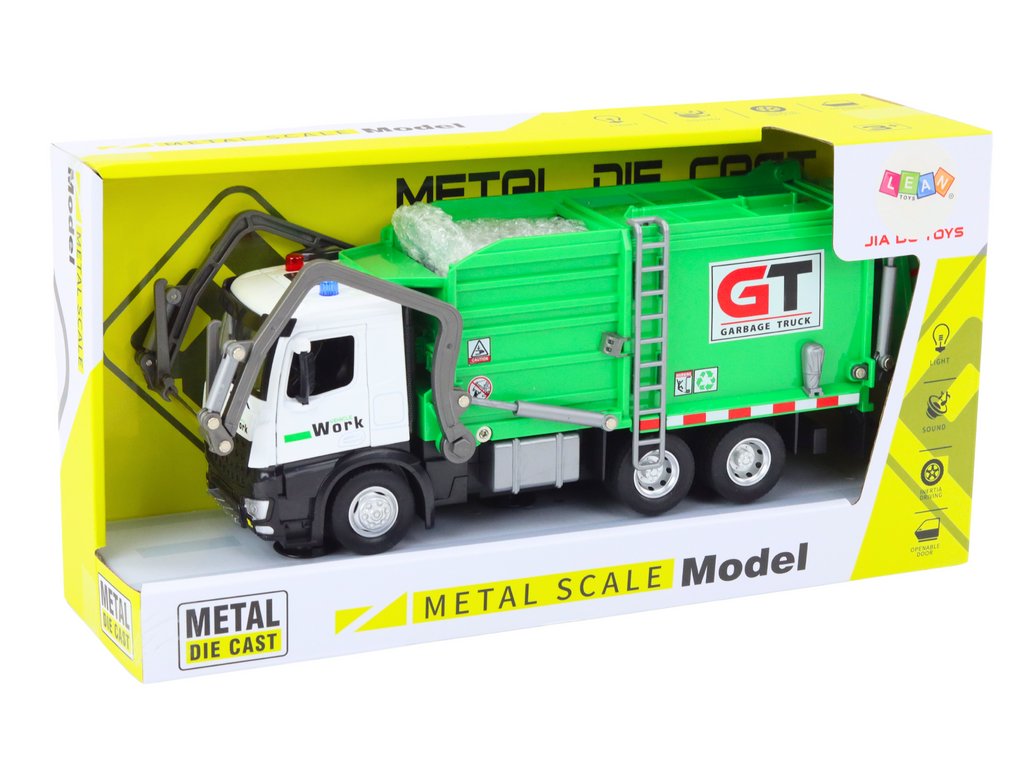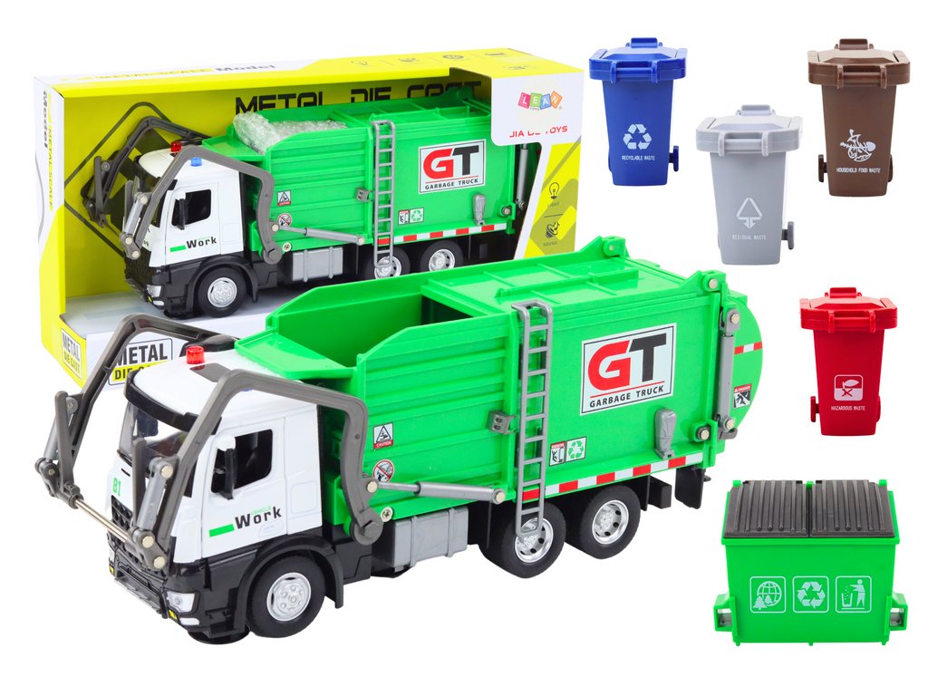 Objevte kovový popelářský vůz, který nejen že uklízí, ale také baví a vzdělává děti. Je vyroben v moderním stylu se zeleným provedením, které mu přidává na kouzlu. Frikční pohon zajišťuje snadný pohyb, a v sadě najdete barevné koše na odpadky a vystřihovánky z papíru. Ideální hračka do dětského pokoje. Pevná konstrukce z kovu garantuje trvanlivost a odolnost, a interaktivní vzdělávání o třídění odpadu činí z tohoto vozidla skvělý dárek pro malé milovníky strojů.