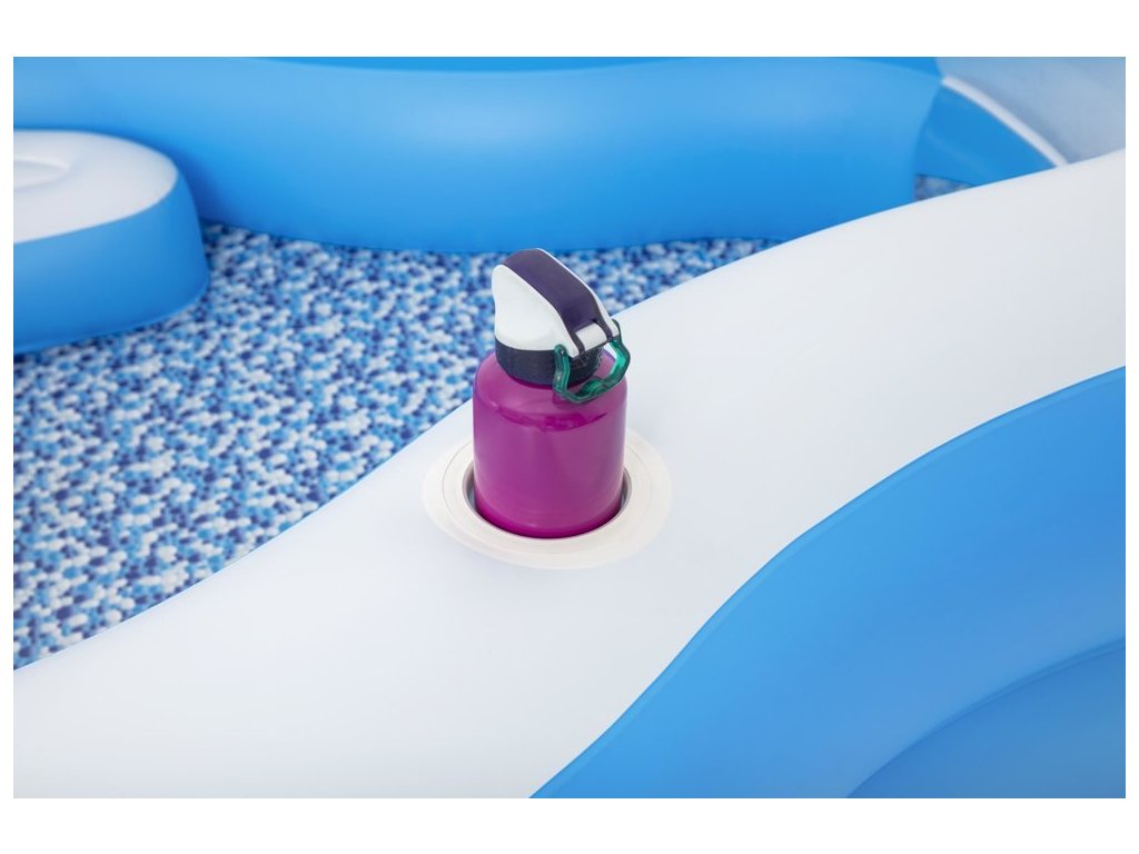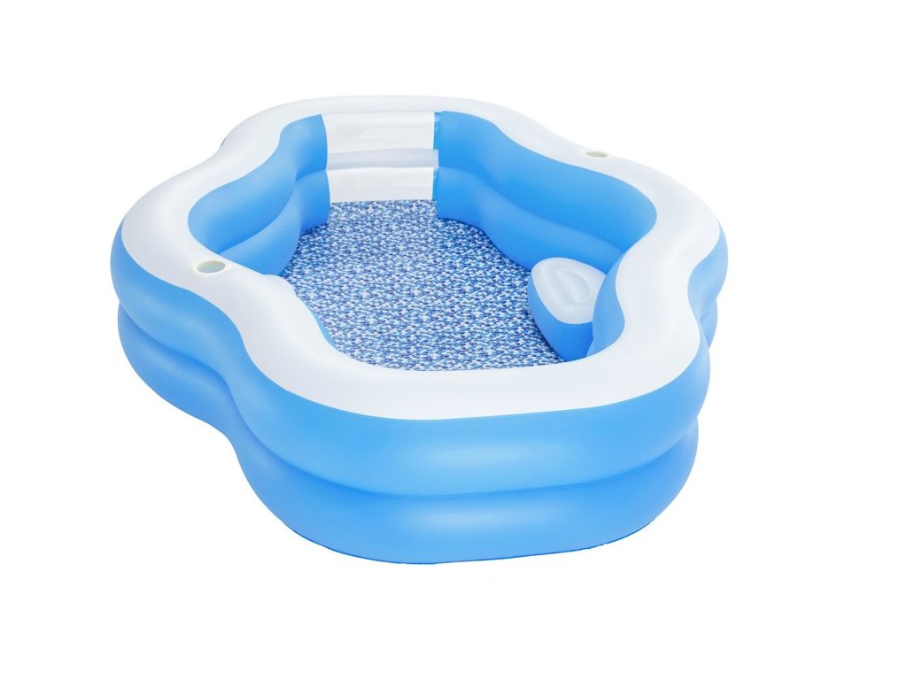 Nafukovací bazén je určen k relaxaci pro celou rodinu a přátele. Jeho speciální tvar a vestavěná sedadla vám umožní relaxovat v pohodlí vašeho domova. Jeho konstrukce je stabilní a stěny poskytnou pohodlnou podporu pro záda. Bazén je vyroben z trvanlivého vinylu odolného proti poškození.