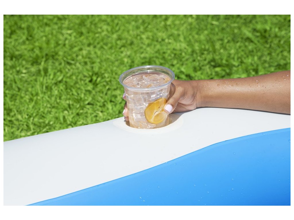 Pro maximální pohodlí jsou v bočních stěnách bazénu zabudovány otvory na pití, takže k němu máte přístup na dosah ruky. Jeho montáž je velmi jednoduchá a nezabere vám mnoho času. Navíc ve složeném stavu zabírá velmi málo místa, takže jej můžete bezpečně uložit mimo sezónu nebo si jej vzít s sebou na výlet.