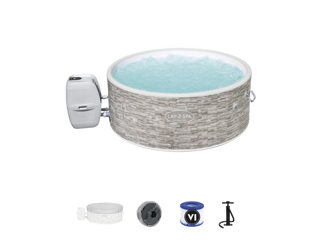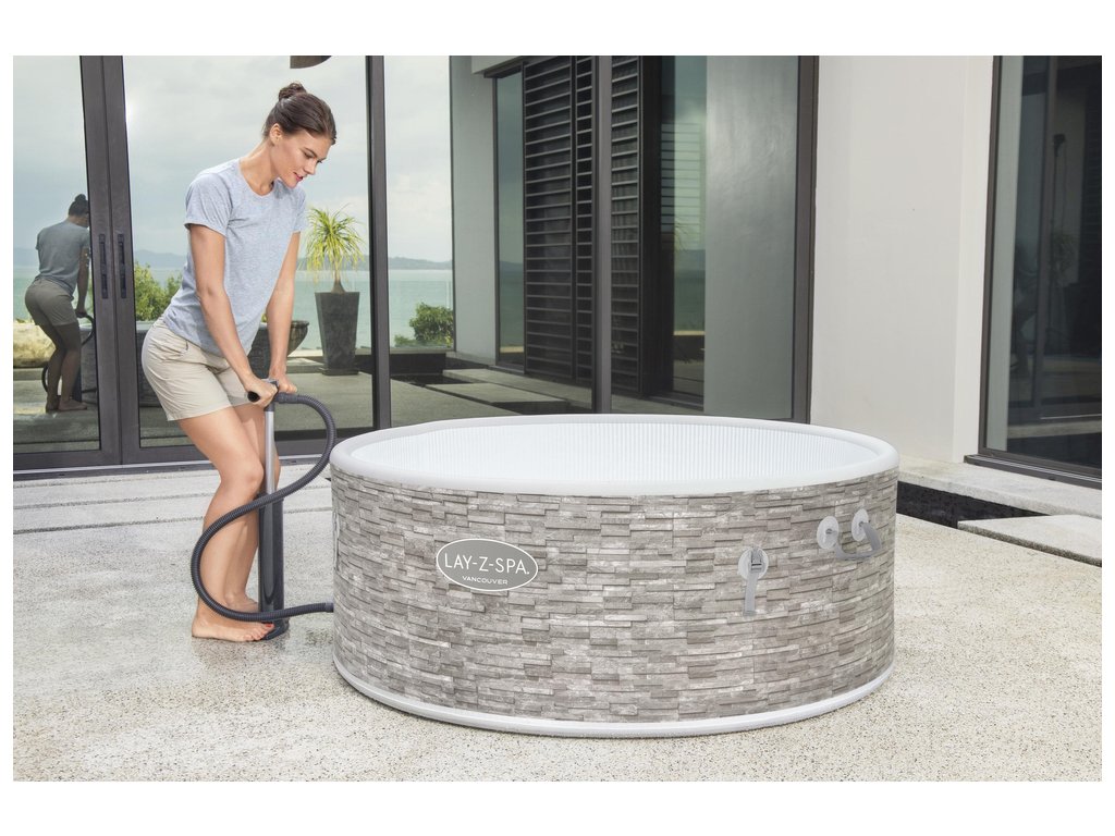 Nafukovací vířivka Bestway Vancouver Lay-Z-SPA je jedinečné vířivka, které můžete mít ve své zahradě nebo dokonce doma. V chladnějších dnech můžete skočit do teplé vody a užít si osvěžující a úžasný odpočinek. Vířivka má rozměr 155 x 60 cm, s tímto rozměrem vířivka pojme až 4 osoby.