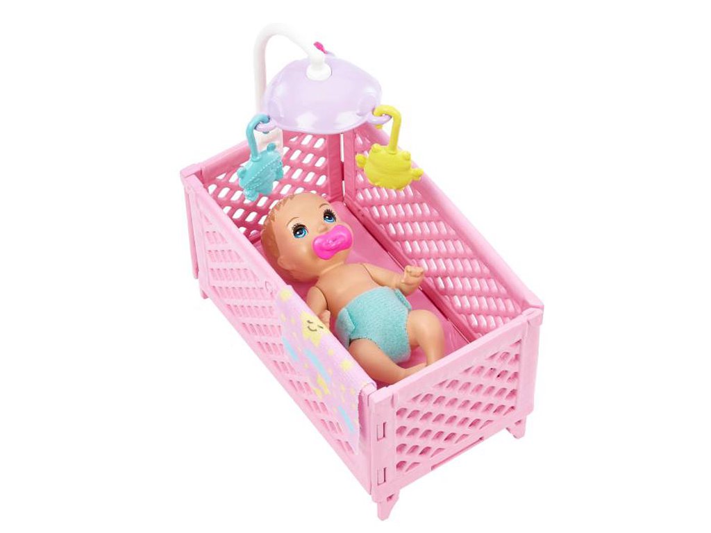 Celý set se zaměřuje na krmení a spánek miminka. Proto v sadě najdete lahvičku, kterou je třeba nakrmit miminko a dudlík. Když dáte miminku lahvičku nebo dudlík, můžete si všimnout, jak unaveně zavírá oči, a po jejich odejmutí se vrací s rozjařeným výrazem. Při jídle nastává čas na spánek - k tomu se hodí pohodlná postýlka s kolébkou, deka se hvězdičkami a samozřejmě plyšový medvěd. Aby miminko rychleji usnulo, může Barbie použít knížku s pohádkami - pouze fantazie dítěte určuje, kterou pohádku dnes miminko uslyší.