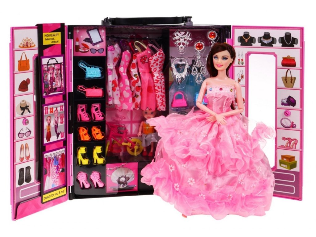 Velký šatník s panenkou je snem každé mladé dámy. Sada se skládá z 30 okouzlujících doplňků. Šatník pro panenku má rukojeť pro přenášení, takže ho dítě může vzít kamkoli sebou. Hra s touto sadou naučí dítě udržovat ve svém pokoji pořádek.