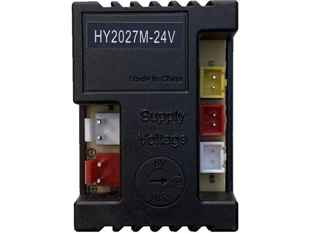 Řídicí jednotka HY2027M2-24V je náhradní elektronický díl určený pro dětská elektrická autíčka s napětím 24 V. Slouží k řízení výkonu motoru, směru jízdy a spolupráci s ovládacími prvky vozidla. Zajišťuje plynulý rozjezd, stabilní chod a správnou funkčnost celého pohonného systému. Ideální řešení při výměně poškozené nebo nefunkční řídicí jednotky.