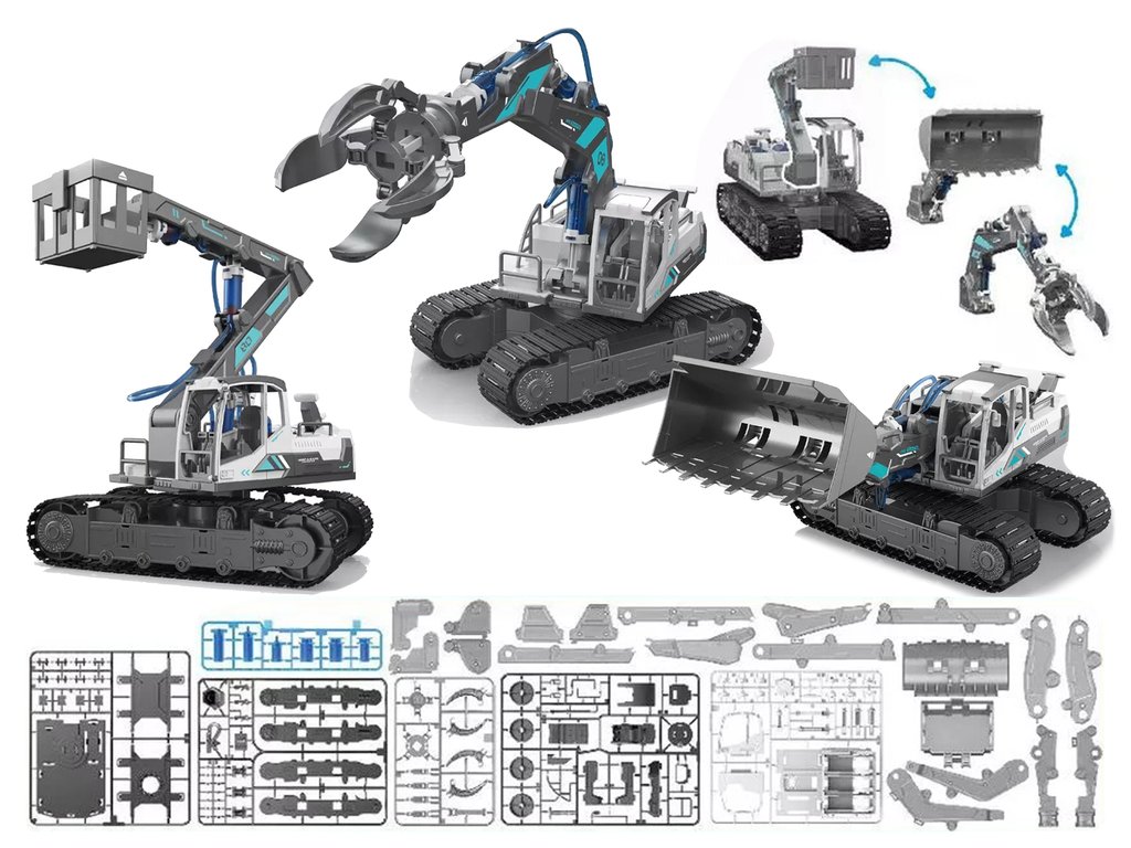 - Sada využívá 3 hydraulické systémy k pohonu modelu a provádění činností, jako je uchopení, zvedání a spouštění bagru. Tyto stroje nejen uspokojí mladé průzkumníky, ale umožní jim úžasnou zábavu! Postavte si ho sami!
