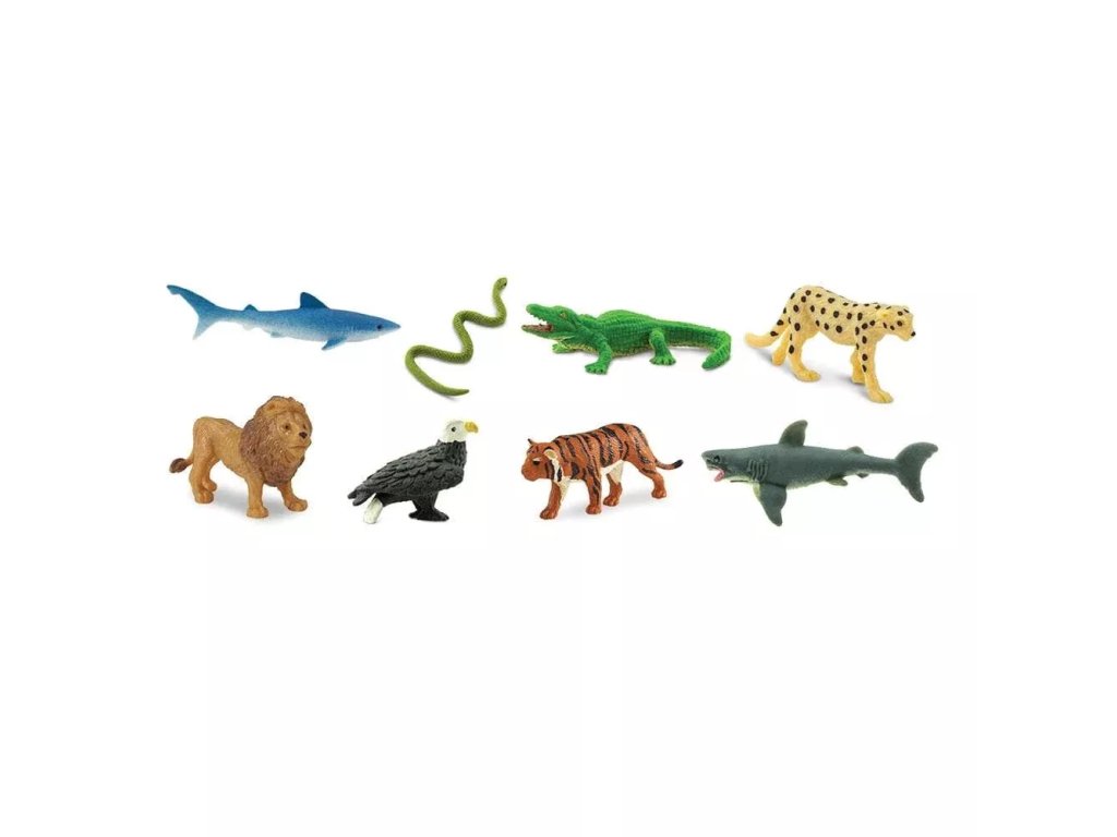 Soubor ručně malovaných mini figurek znázorňujících různé druhy predátorů. Figurky jsou velmi malé (2–2,5 cm) a hodí se jako dekorace, materiál pro tvoření a pomůcka při výuce.