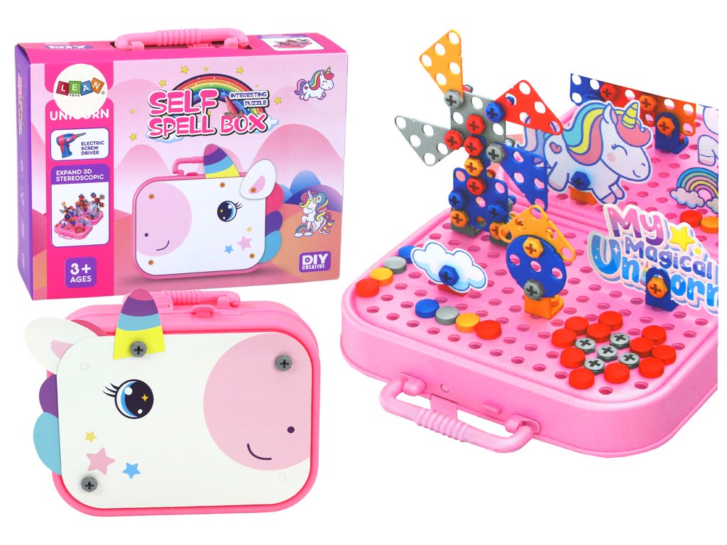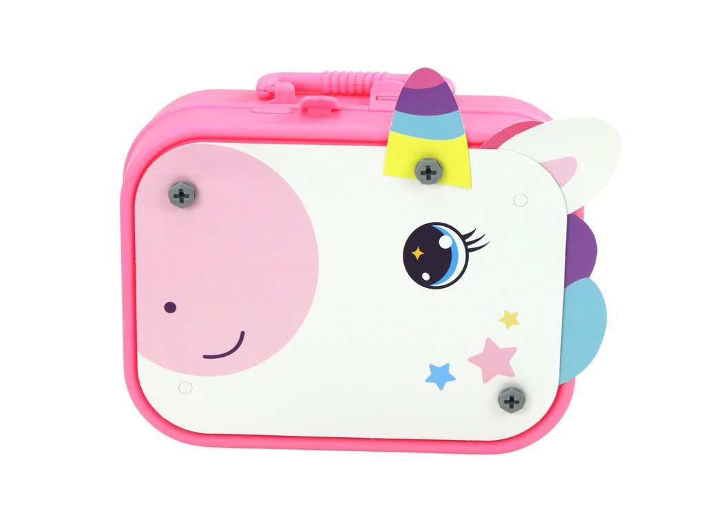 Hračka kufřík stolek DIY se šroubováním s motivem jednorožce je magické dobrodružství pro každou malou snílkyni! Hlavním prvkem této sady je roztomilý kufřík, který nejen slouží jako úložiště, ale také se rozkládá a vytváří stabilní stolek na hraní.