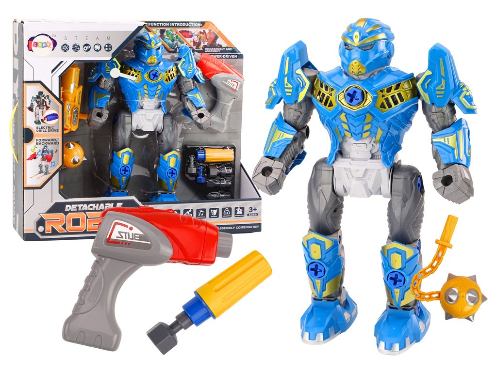 Robot Ke Skládání Zbraň Vrtačka Šroubovák Světla Zvuk Modrý