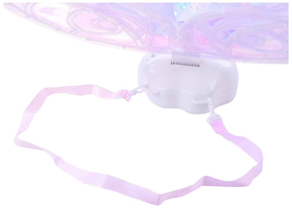 Po stisknutí tlačítka, které se nachází mezi oběma křídly - se aktivují. V první řadě křídla začnou mávat, svítit a zahraje pohádková hudba, aby si dítě mohlo připadat jako malá víla z říše kouzel.