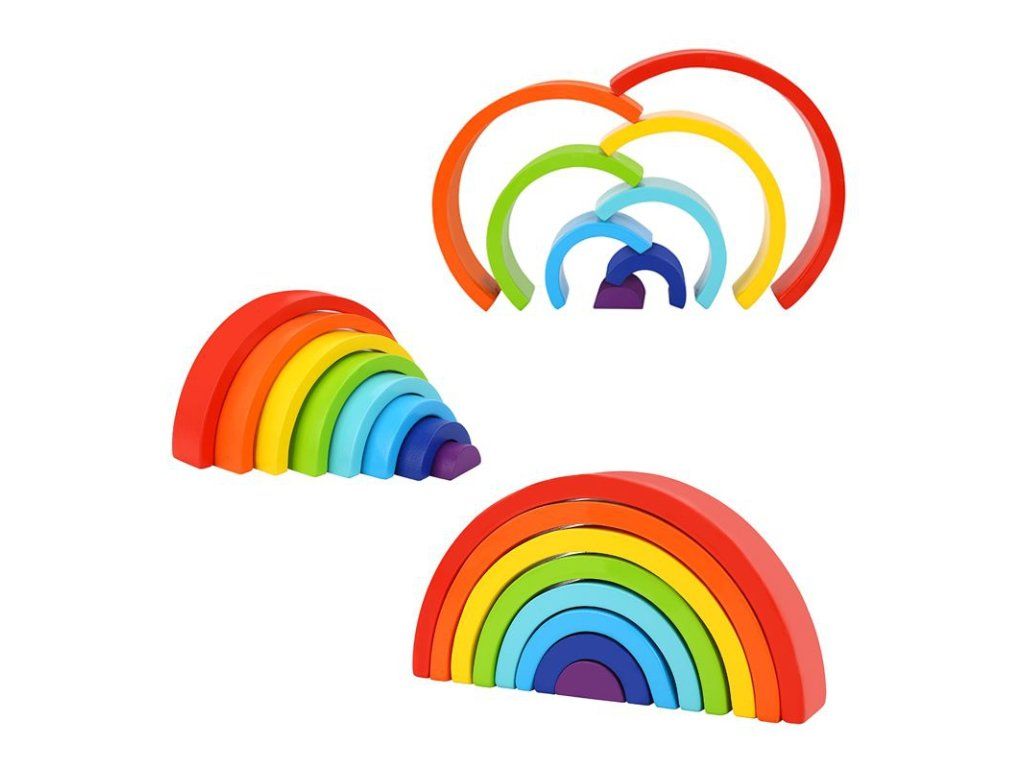 Dřevěná duha od značky TOOKY TOY jistě probudí fantazii i vašeho dítěte. Dítě z dřevěných dílů může naaranžovat duhu a objevit pořadí, ve kterém jsou barvy uspořádány. Tyto barevné dřevěné oblouky mají mnohem více možností, než by se na první pohled zdálo. Může vytvořit barevný tunel nebo můžete naskládat jeden na druhý a vytvořit efektní věže. Ve skutečnosti to, co bude vytvořeno z Duhy, závisí pouze na kreativitě dítěte. Hračka bude rozvíjet manuální zručnost, kreativitu a představivost dítěte a zlepší koncentraci. Přeneste duhu z oblohy do dětského pokoje.