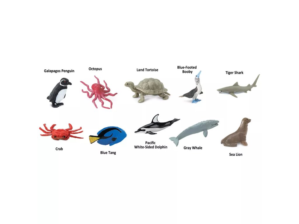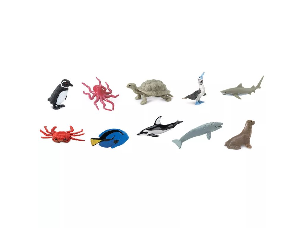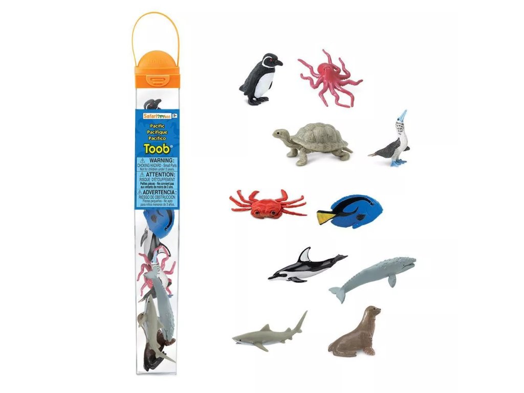Tichý oceán je největší a nejhlubší ze světových oceánů a pokrývá přibližně třetinu zemského povrchu. Tato sada představuje vybrané druhy zvířat žijících v jeho vodách v podobě ručně malovaných figurek.