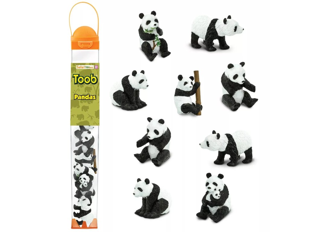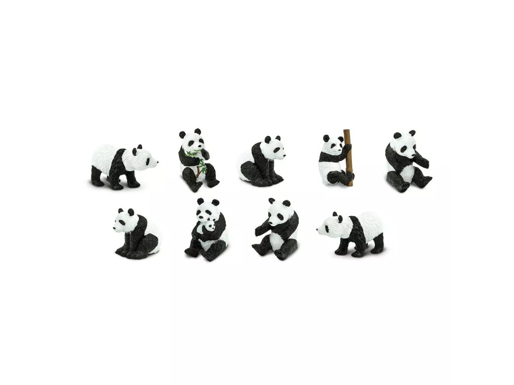 Sada obsahuje devět ručně malovaných figurek pand, navržených jako sběratelský kousek i edukativní pomůcka. Figurka má reálné zbarvení a drobné detaily; velikost jednotlivých modelů se pohybuje mezi 4 a 7,5 cm. Doporučený věk: 3+.