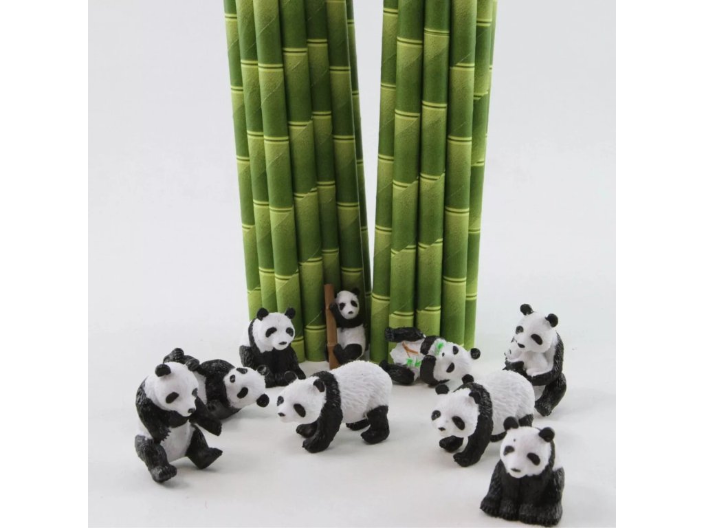 Pandy jsou zobrazeny v různých pózách, včetně pandy s mládětem a jedince lezoucího po bambusovém stromě. Balení je ve formě tuby, do které lze figurky také opakovaně ukládat.