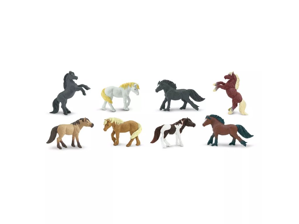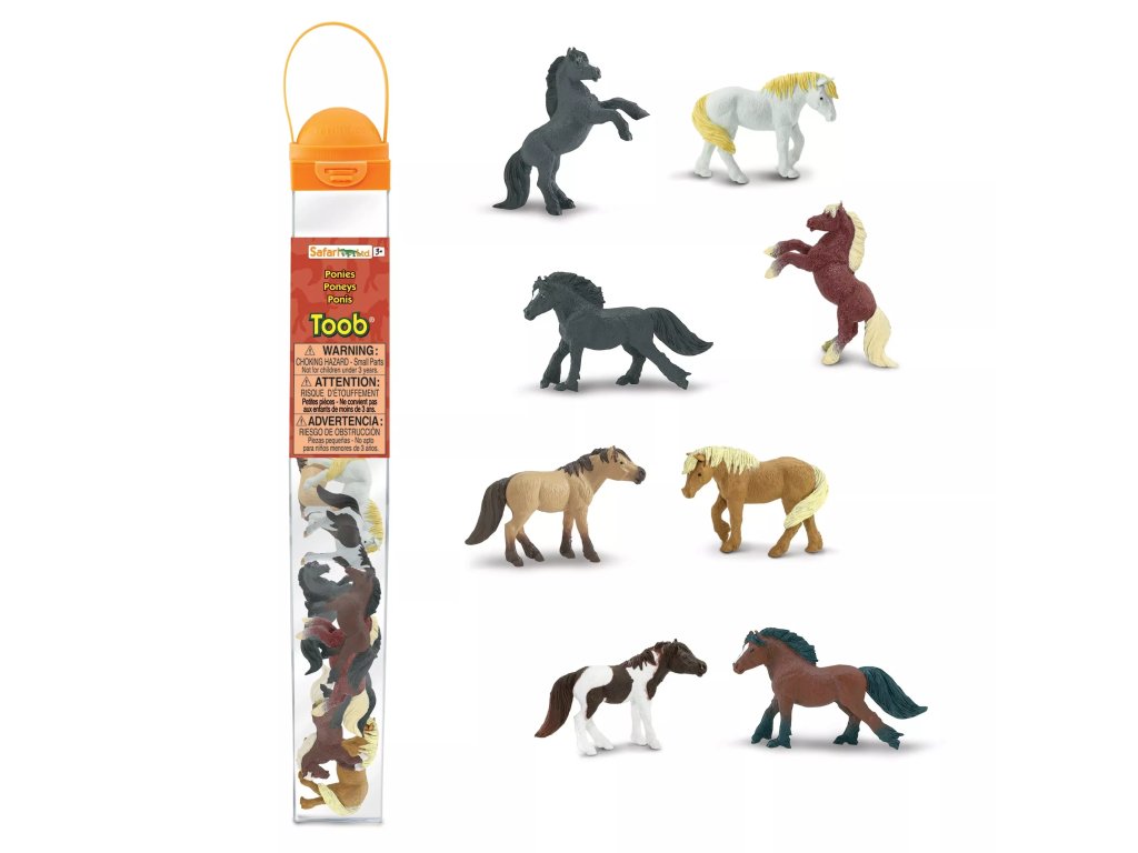 Soubor osmi detailně zpracovaných figurek poníků v praktické tubě. Figurky jsou ručně malované a slouží jako didaktická pomůcka pro poznávání typických rysů jednotlivých plemen.