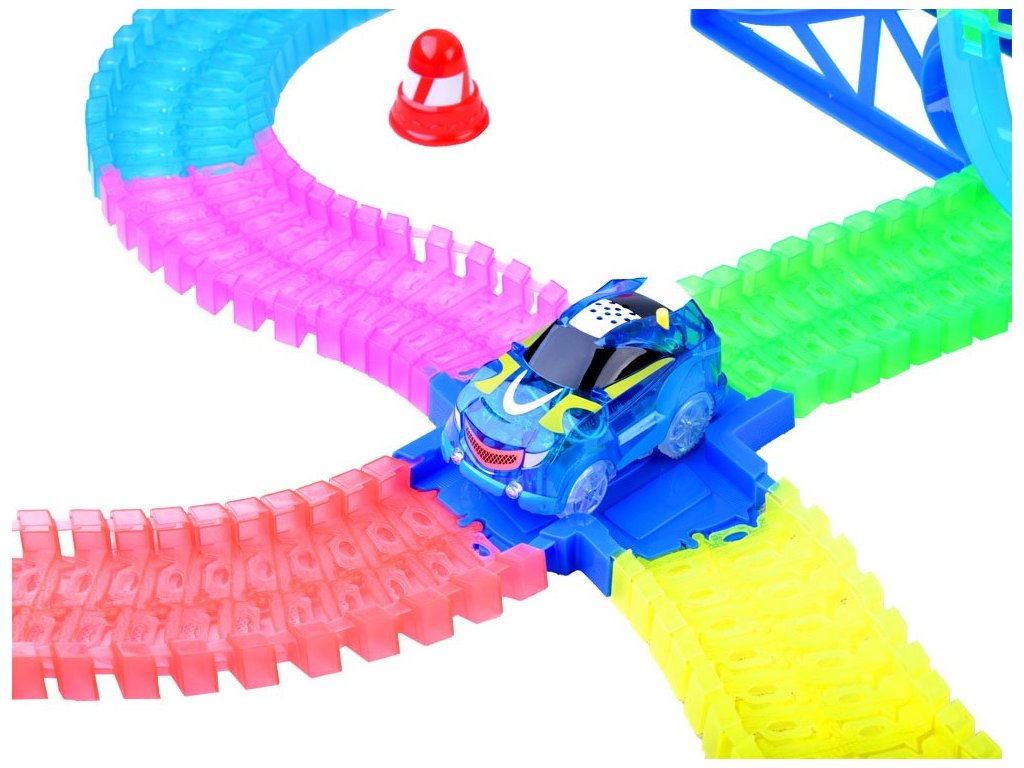 Velká svítící autodráha s autíčkem na dálkové ovládání. Rozsáhlá trasa se zatáčkami, smyčkami, mostky a křižovatkou poskytne spoustu zábavy. Dráhu si můžete postavit libovolně, dle představy. Trasa je dlouhá 656 cm.