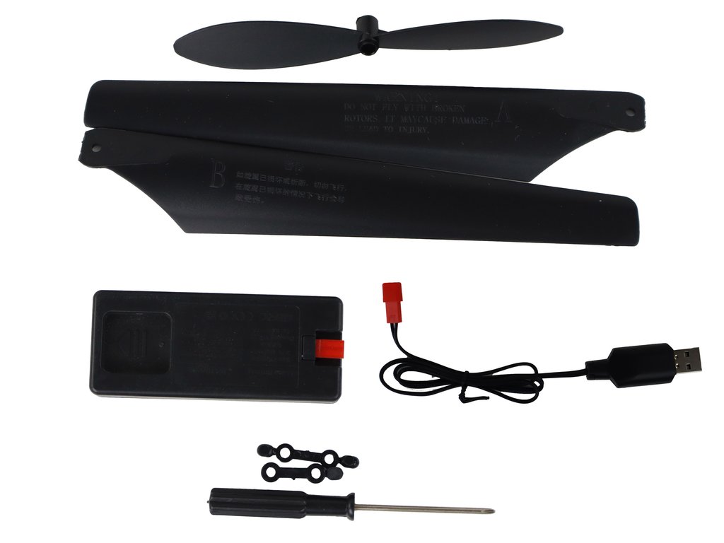 - Součástí je kamera připevněná na spodní části těla vrtulníku, která umožňuje natáčet videa a pořizovat fotografie ze vzduchu