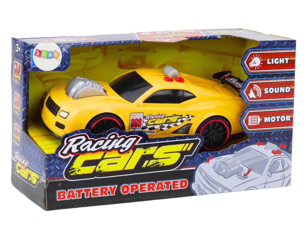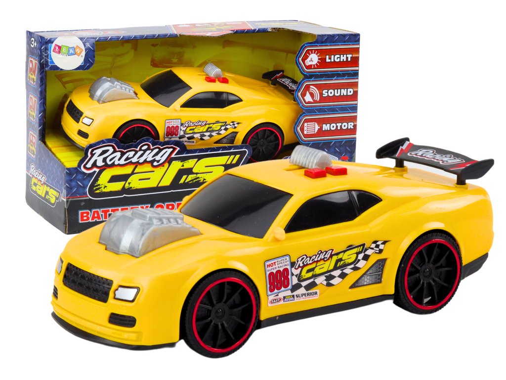 Závodní auto Světla Zvuky Otevírání Motor Žlutý
