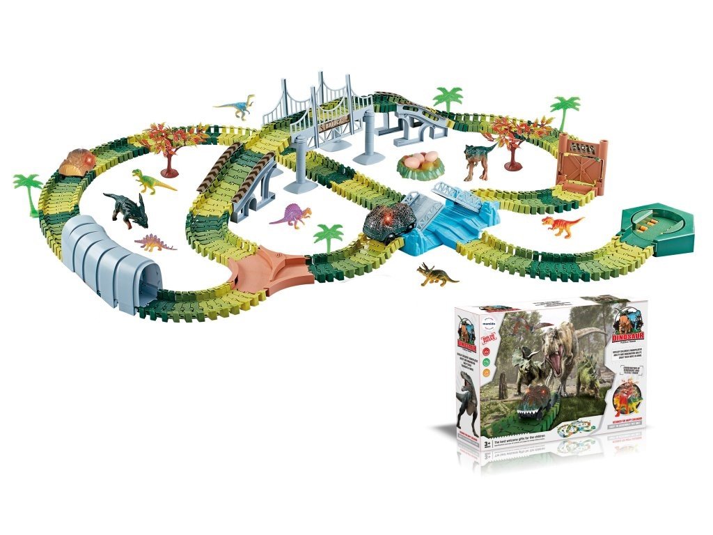 Vydej se do pravěku s jedinečnou dinosauří autodráhou! Postav si svou vlastní cestu z více než 240 flexibilních dílků, které lze libovolně ohýbat a kombinovat. Autíčko projíždí přes mosty, tunely a brány, zatímco kolem číhají dinosauři, kteří vytváří dobrodružnou atmosféru.