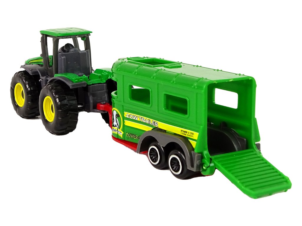 Celá hračka je vyrobena z odolného plastu, což zaručuje její trvanlivost a bezpečnost během hry. Traktor má rozměry: 8 cm x 4,5 cm x 4 cm, takže ho děti mohou pohodlně držet v rukou, zatímco přívěs: 9 cm x 4 cm x 3 cm, což jej dělá skvělým společníkem při kreativních cestách.