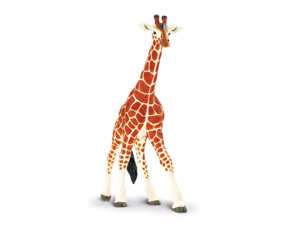 Figurka znázorňuje žirafu síťovanou z Afriky s charakteristickými velkými skvrnami rozmanitých tvarů. Dlouhý krk je zobrazen v typické poloze, kterou žirafy používají k dosažení listů v korunách stromů; u samců je krk také nástrojem v soubojích o samice.
